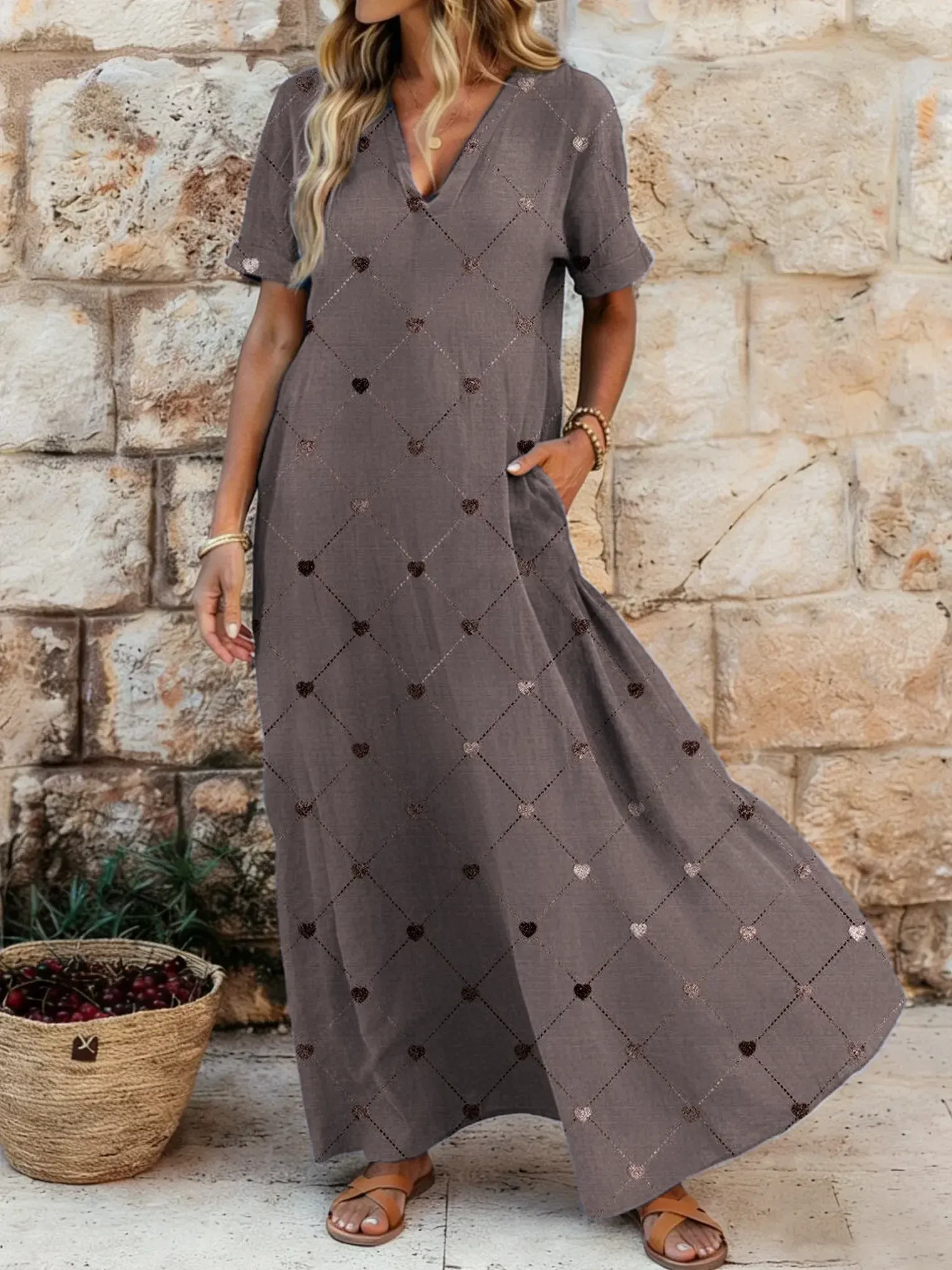 2026 Bavlněné lněné šaty s výstřihem do V