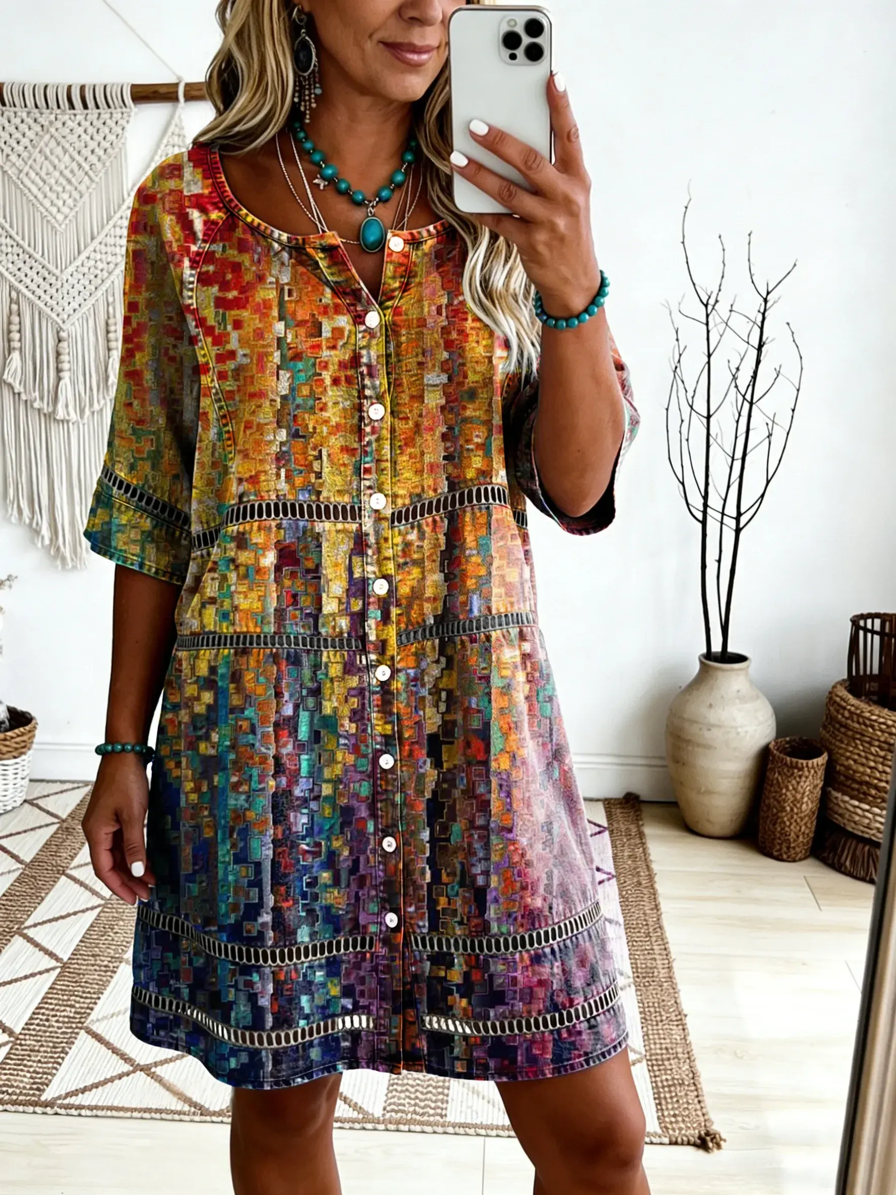 Bavlněné lněné šaty s kulatým výstřihem – Lehkost, pohodlí a přirozená elegance