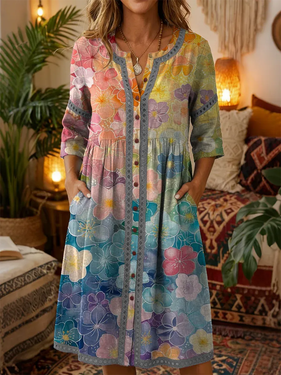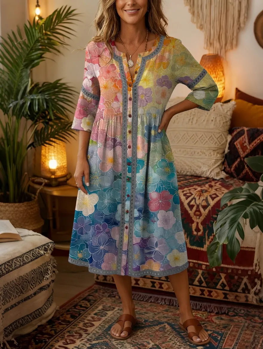 🌸 2026 Dámské šaty s výstřihem do V a knoflíky