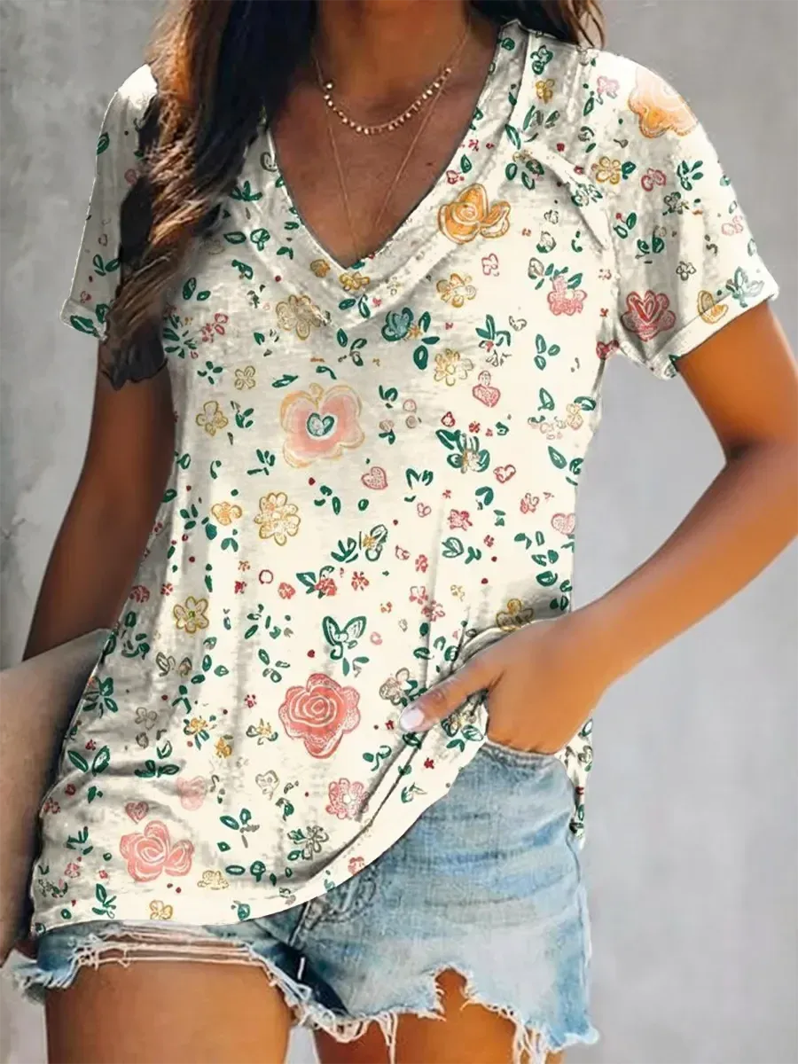 Květinový potisk nikdy nevyjde z módy! Jemné květy dodávají tomuto tričku elegantní a svěží vzhled, který podtrhne vaši přirozenou krásu. Ideální volba pro ženy, které milují jemný a romantický styl.