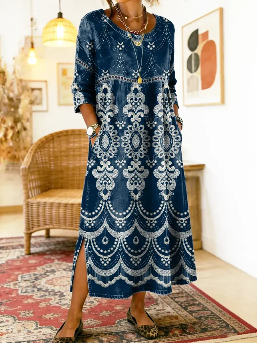 Bavlněné lněné šaty s kulatým výstřihem – Lehkost, pohodlí a přirozená elegance