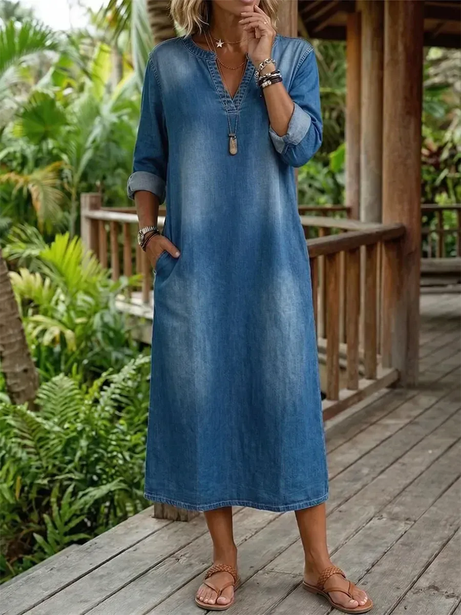 2026 Bavlněné lněné šaty s výstřihem do V