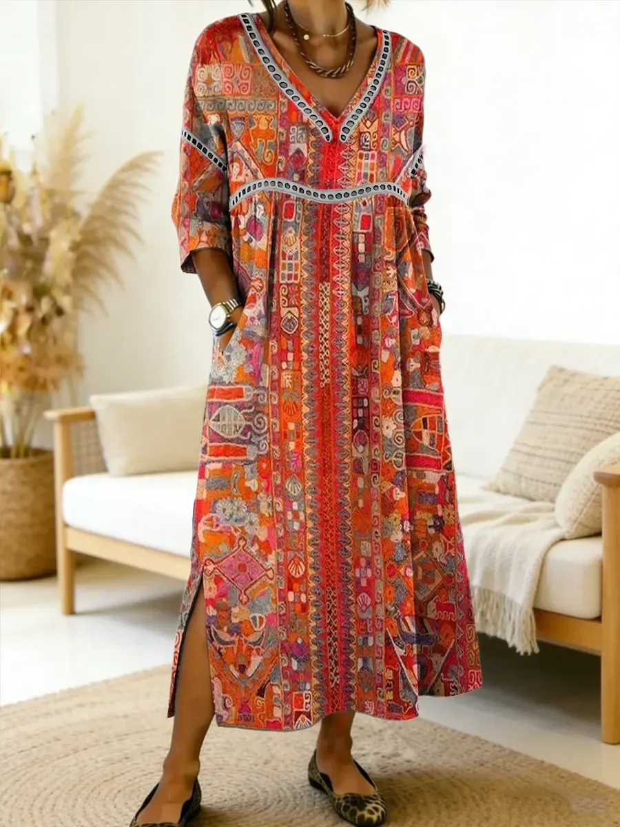 Bavlněné lněné šaty s výstřihem do V Lehké, prodyšné a nadčasově elegantní – ideální volba pro každodenní nošení i volné chvíle.