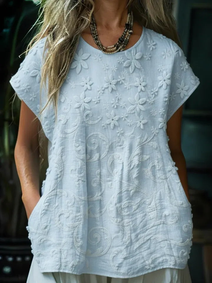 Dámské bavlněné a lněné tričko s kulatým výstřihem – Váš nový oblíbený kousek pro každý den!